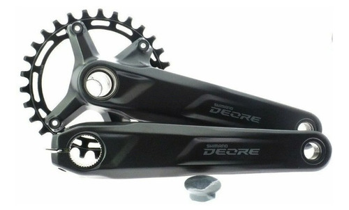 Las bielas para bicicleta de montaña SHIMANO DEORE FC-M5100-1 proporcionan un cambio preciso y fiable para transmisiones de 1×10 o 1×11 velocidades, si la maza es con eje aguja también se puede utilizar en transmisiones de 9 y 12 velocidades.