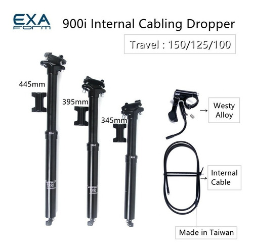 Dropper que utilizan marcas de renombre como commencal, Diseñada y fabricada en Taiwán, alta calidad, Cableado interno, incluye control al manillar, funda, cable y manual de instrucciones. 445 mm de largo x 150 mm de recorrido