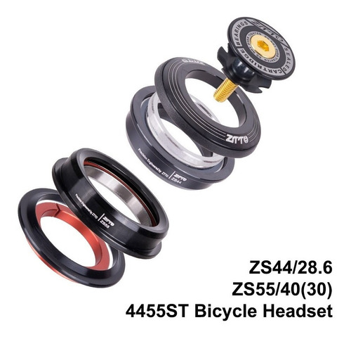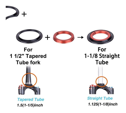 Juego de dirección apto para cuadro cónicos, con medida superior 44mm e inferior de 55 mm, para horquillas cónicas , y también incluye adaptador para horquillas rectas ahead 1-1/8.