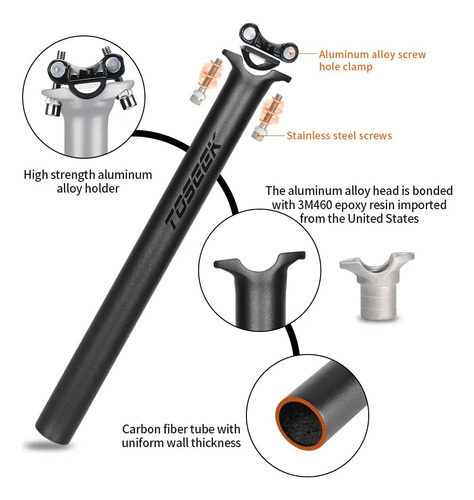 Tija Tubo Asiento Toseek Carbono 27.2 Ultra Light Sin retraso