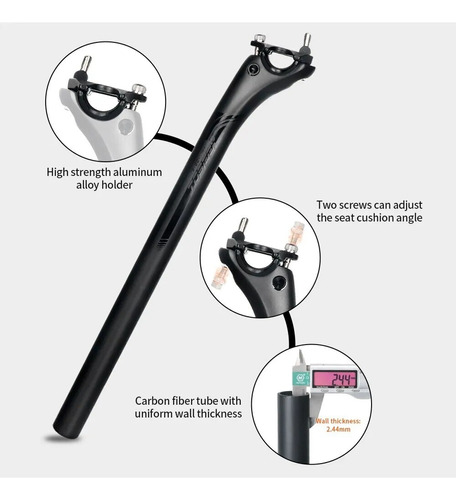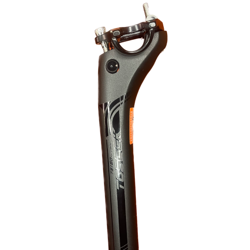 Tija de excelente calidad, totalmente de fibra de carbono, se caracteriza por su gran capacidad para absorber golpes, saltos y dar una mayor comodidad al ciclista.